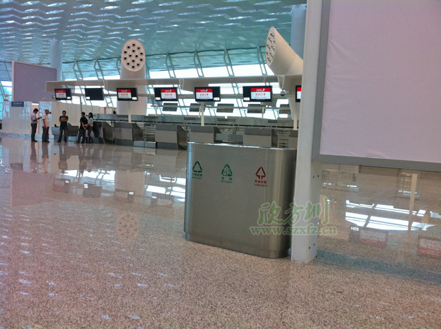 為了裝飾寶安國際機(jī)場T3航站樓和GTC大樓的環(huán)境衛(wèi)生,深圳市機(jī)場股份有限公司于2013年4月在我公司訂購了2733個(gè)垃圾桶,包括有大型不銹鋼垃圾桶、自棄桶、阻燃桶和接水桶等多種材質(zhì)的垃圾桶。