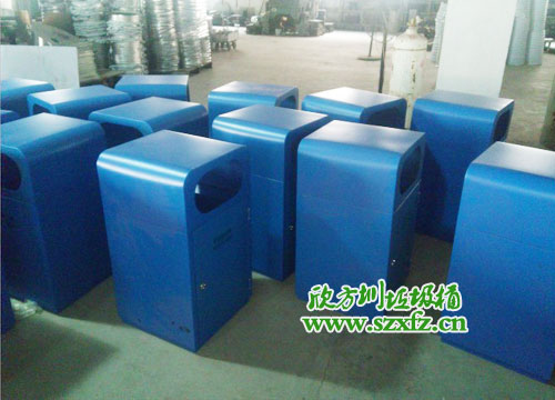這批不銹鋼垃圾桶的規(guī)格是400*400*730mm,按照客戶的要求制作成三種顏色,并絲印不同的垃圾回收標識:45個藍色的印可回收垃圾的中英文字樣,47個灰色的印其他垃圾的中英文字樣,34個紅色的則印有害垃圾的中英文字樣。成品的造型十分精致漂亮,亮眼的顏色也是一道美麗的風景線。