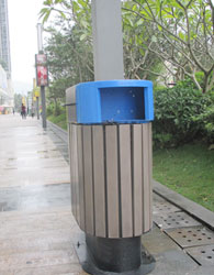 云浮市云安區(qū)街道辦采購的鋼木垃圾桶,最關心的兩個問題:1.結實、耐用、防腐蝕! 2.顏色要靚麗,款式新穎,客服接受定制。
