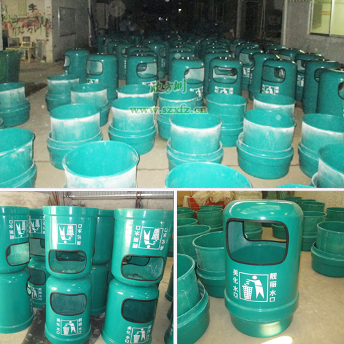 惠州工業(yè)園車間,玻璃鋼果皮箱等待絲印