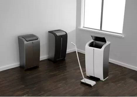 18升垃圾的垃圾桶這個苗條的垃圾桶可以容納18的垃圾,而且,前面那個掃把可以自動打掃房間,不適用的時候,掃把可以鉆到垃圾桶前下方的槽子里。很不錯的設計!