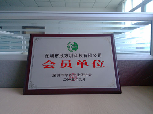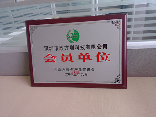 2013年9月,經(jīng)過深圳市綠色產(chǎn)業(yè)促進會的審核批準,欣方圳科技榮獲“深圳市綠色產(chǎn)業(yè)促進會會員單位”殊榮。