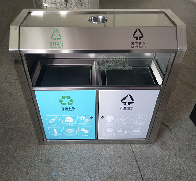 • 使用范圍:不銹鋼靠墻單面投放分類垃圾桶表面光滑、亮麗,是電梯口、寫字樓、學(xué)校、物業(yè)、賓館、酒店、機(jī)場、汽車站等擺放的首選。