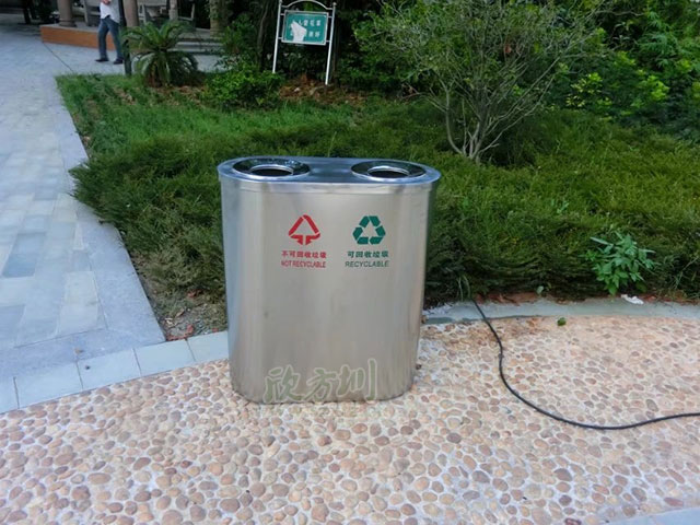 欣方圳精品不銹鋼戶外分類垃圾桶