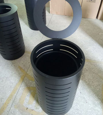 戶外圓形鋼制烤漆垃圾桶桶頭絲印